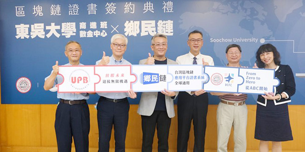 東吳大學商學進修學士班、東吳大學數位貨幣與金融研究中心、與鄉民鏈在2022年9月26日共同召開簽約記者會,宣示東吳大學發行區塊鏈證書的全新發展。商學院院長阮金祥指出,區塊鏈證書已是主流應用,他的目的在降低發證查核的交易成本,未來還有更多創新應用。除了大學學位證書的區塊鏈由教育部統一發行外,東吳大學商進班的永續經營專班認證、數金中心的課程認證、創業競賽、教授推薦信等,都可以發行區塊鏈證書,大幅提高專業認證的可信度與運用彈性。
